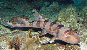 The white-spotted bamboo cat shark is a carpet shark. This species is nocturnal and primarily harmless to humans. White-spotted bamboo sharks have a very distinct dorsal fin that can alter or effect where they choose to live, as well as their mobility methods. They are found in the Pacific Ocean. Since these sharks are nocturnal, they feed at night, mostly praying on small fish and invertebrates. Juvenile sharks need a higher intake of carbon than adult sharks, especially during the wet seasons. White spotted bamboo sharks have an advantage in finding carbon sources because they are benthic predators (meaning they prey on fish near the sea-bottom). These species of sharks have electroreceptors along their snout to help them locate prey that is buried in the sand and mud, makes them very efficient users of detrital carbon resources. Whitespotted bamboo sharks are oviparous (egg laying). A theory adapted from an aquarium in Indonesia sugested that the female contains both the male and the female reproductive organs; the female has the ability to store sperm for that long; and lastly that the female has somehow stimulated the eggs without sperm, process called parthenogenesis. The offspring kept away from males produced asexually viable offspring.